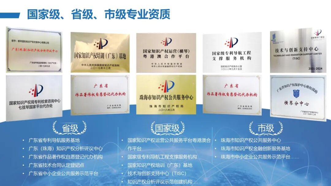 此外,中心构建的国家级、省级 、市级三级资质矩阵,覆盖知识产权创造、保护、运用全流程,为跨区域服务提供了坚实能力保障。