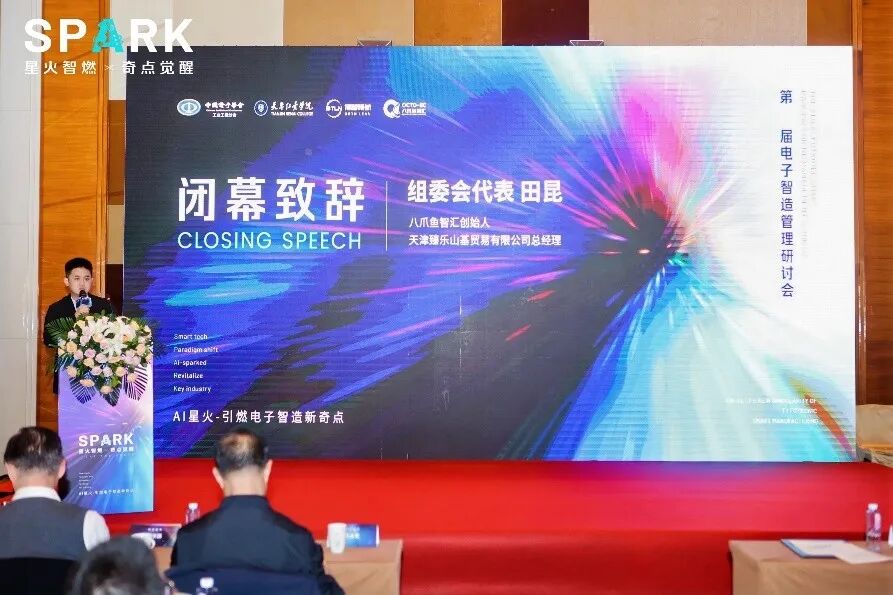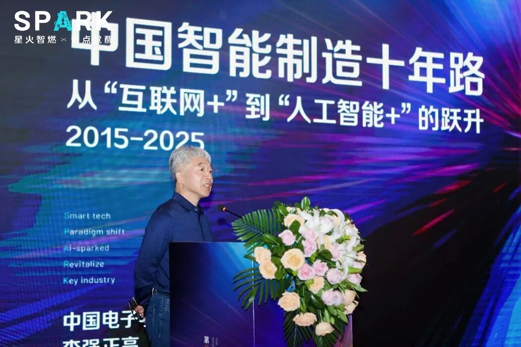 分会委员李强正高就研讨会主题“AI星火-引燃电子智造新奇点”进行了有关“中国智能制造十年路”的主题报告,探讨了从"互联网+"到"人工智能+"的跃升历程,并讲述了中国电子信息制造业的智能制造,正从数字化基础迈向体系化升级,最终以人工智能为核心驱动力实现智能化跃升的发展之路。
