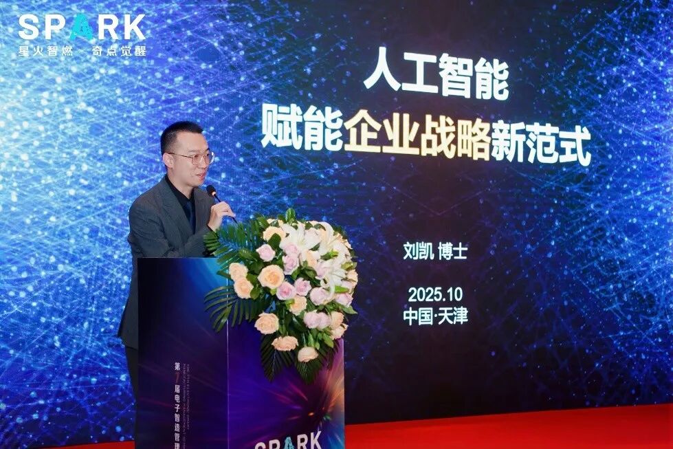 天津大学管理创新研究院刘凯博士进行了“人工智能赋能企业战略新范式”的主题分享,以“柯达时刻”为例,引出AI背景下企业发展的战略思考,并提出战略从一个空虚的概念成为改变世界的思想武器,同世界经济形势密切相关的观点。