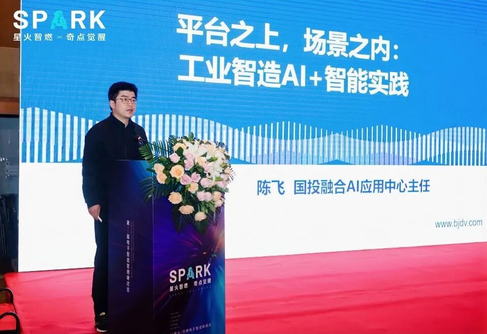 中国电子院国投融合AI应用中心主任陈飞进行了“平台之上,场景之内:工业智造AI+智能实践”主题分享,介绍AI在电子信息制造业中的应用场景和成功案例。