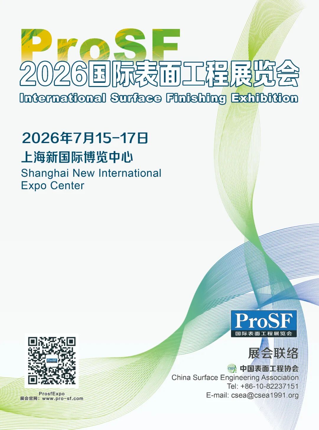ProSF 2026国际表面工程展览将于2026年7月15日~17日在上海新国际博览中心举办,展会同期举办:表面工程行业年会、2025年度“中国表面工程协会科学技术奖”颁奖及电镀行业论坛、热喷涂工业论坛、防锈润滑行业论坛等30余场专题报告;“大买家团”供需对接会等系列活动;加工展区,将有众多加工企业携产品入驻展会展示。展会汇集表面工程行业专家、企业、科研院所共聚一堂,交流探讨,解决行业难题,建立合作关系。