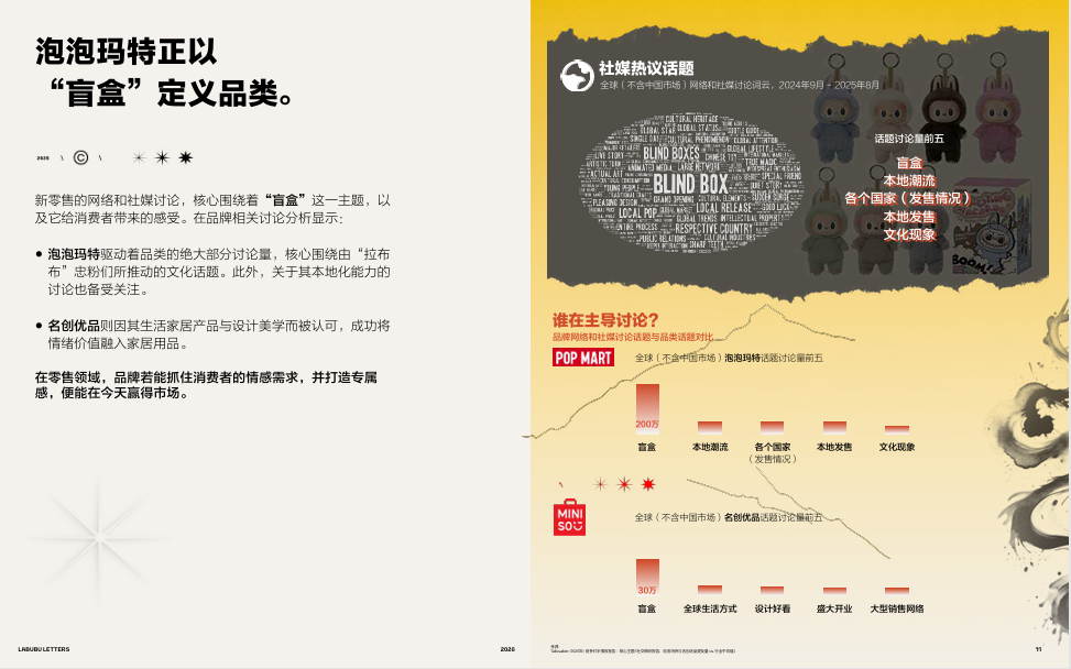 最大的转变在于品牌建设思维:品牌不再仅是内部决策的产物,而是始于一个真实内核,并有意识地开放给社群与文化共同叙事。泡泡玛特和名创优品的增长,始于早期对粉丝社群的培育。在社媒时代,社群应是营销的起点和核心,而非补充。