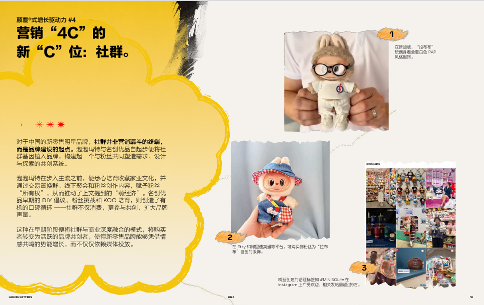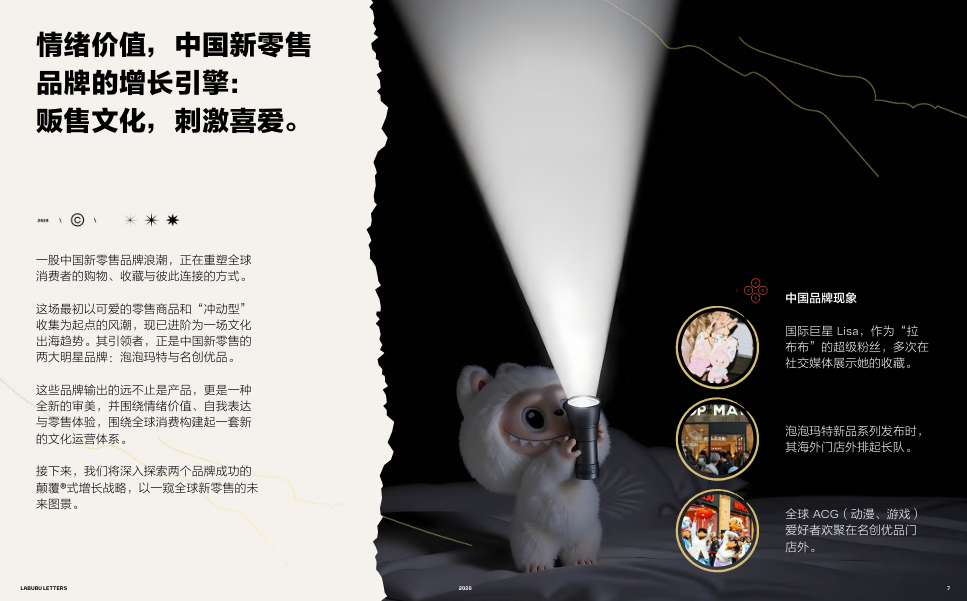 全球顶尖创意机构TBWA发布了《2026“拉布布”启示:中国品牌出海颠覆®式增长白皮书》。这份报告核心揭示了:以泡泡玛特旗下IP“拉布布”为代表的中国品牌,正通过输出情绪价值、聚焦产品力、重构品类规则,在全球市场实现从“制造”到“品牌”的颠覆式增长。