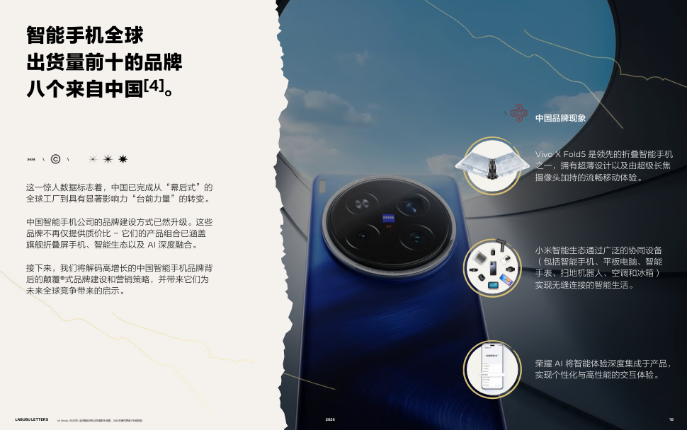 全球智能手机出货量前十的品牌中,八个来自中国。这标志着中国已完成从“全球工厂”到“台前力量”的转变。