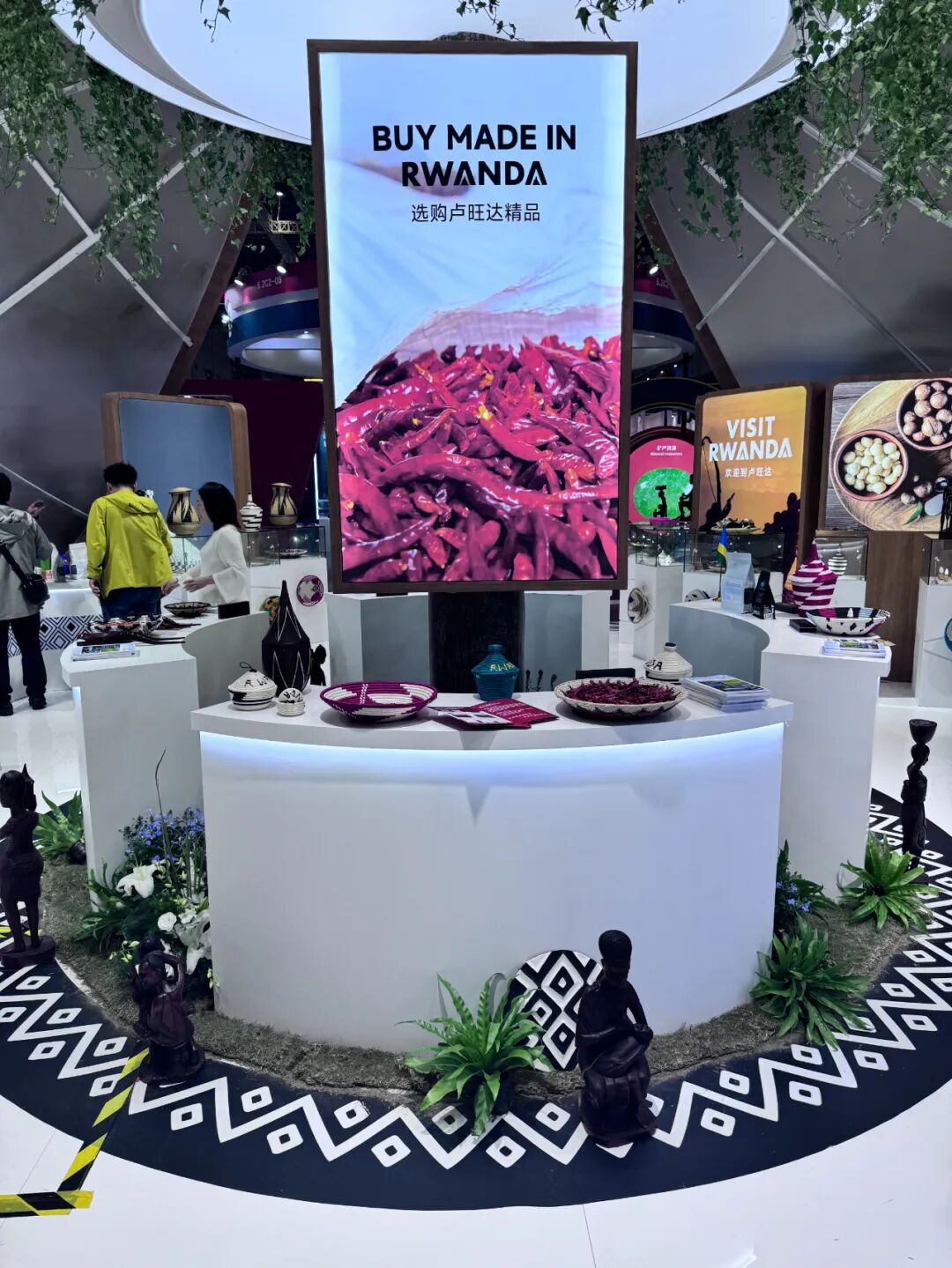 今年,卢旺达展示了多元化的卢旺达制造产品,这些产品继续赢得了中国消费者的青睐。展出的产品包括咖啡和茶、天然蜂蜜、澳洲坚果、辣椒和手工艺品,所有这些都反映了卢旺达丰富的农业遗产和不断增长的制造能力。卢旺达国家馆的参观者还通过传统舞蹈表演和互动活动体验了卢旺达文化的底蕴与热情。