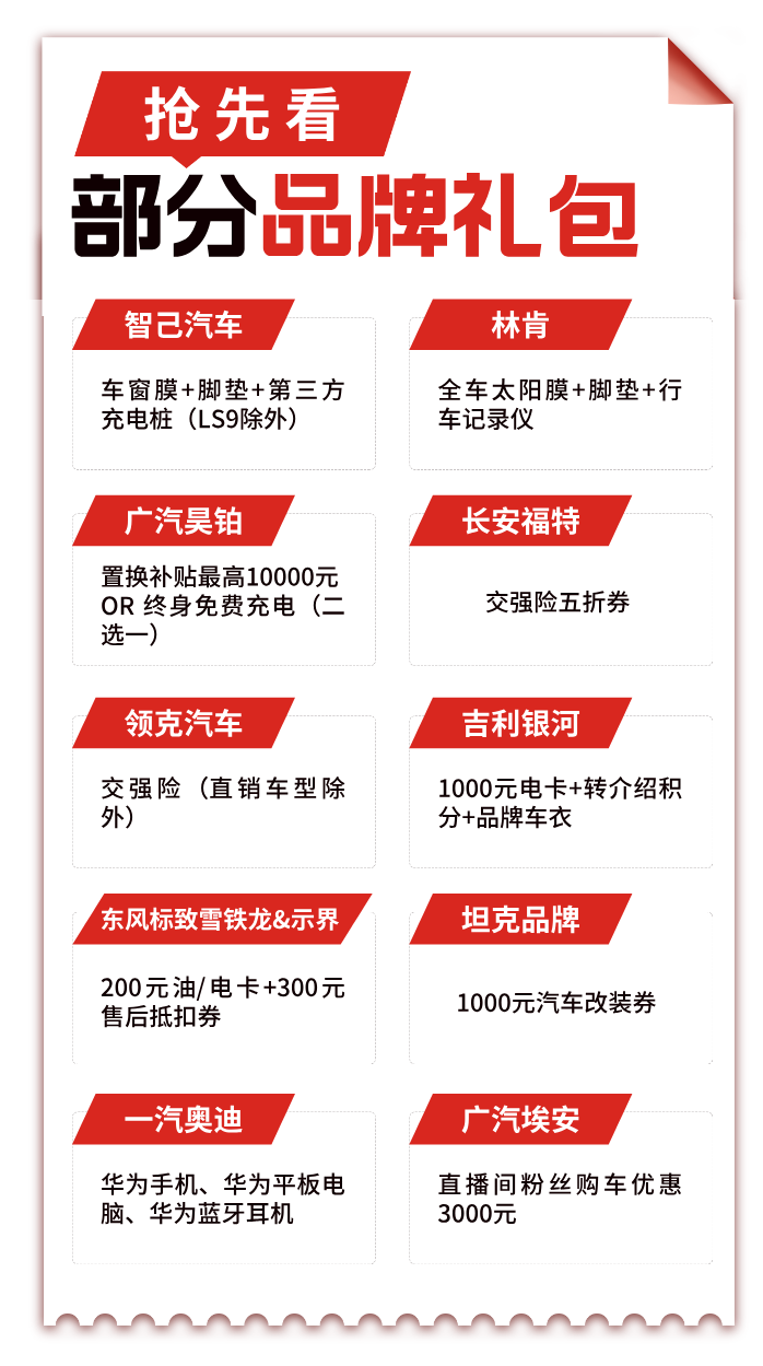 各大参展4S店带来了诚意满满的专属购车大礼包!千万好礼大派送!