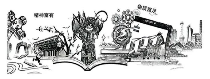 材料一:这一年,我们依靠创新为高质量发展赋能。科技与产业深度融合,创新成果竞相涌现,人工智能大模型你追我赶,芯片自主研发有了新突破,我国成为创新力上升最快的经济体之一。天问二号开启"追星”之旅,雅下水电工程开工建设,首艘电磁弹射型航母正式入列。人形机器人亮出“功夫模式”,无人机演绎绚丽“烟花”。创新创造催生了新质生产力,也让生活更加多姿多彩。