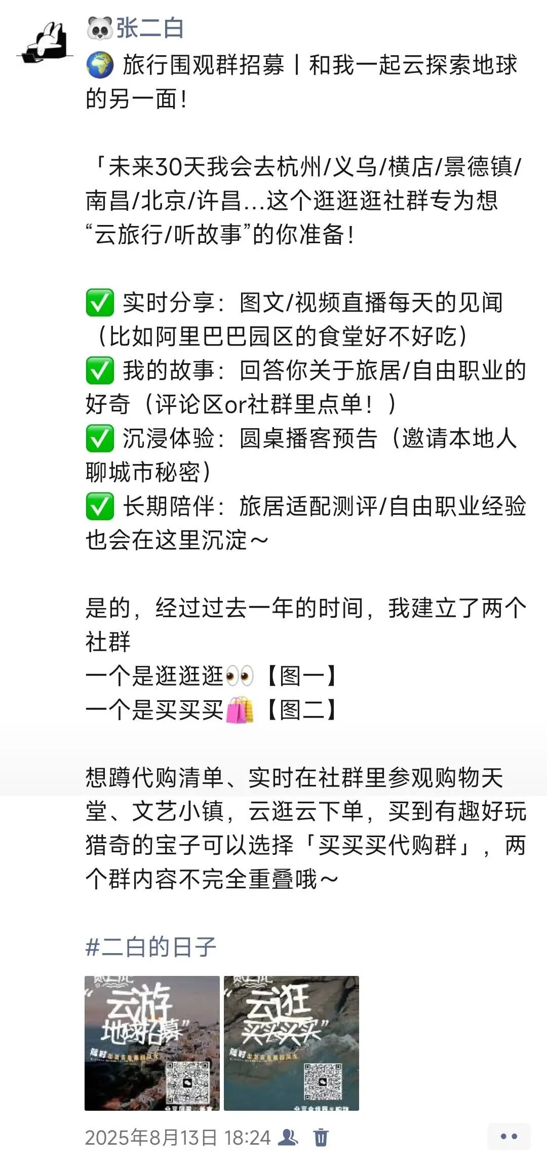 后来群也就没解散,继续游历到一些地方,有好玩的、有趣的、性价比也高的东西,就发给大家,有需要的货品就继续自己逛的同时就买了。