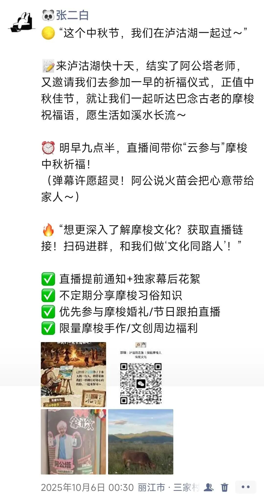 也是各种临时起意的,做了摩挲文化的分享群,做展馆直播、仪式直播、图文直播,分享我们的见闻和体验。
