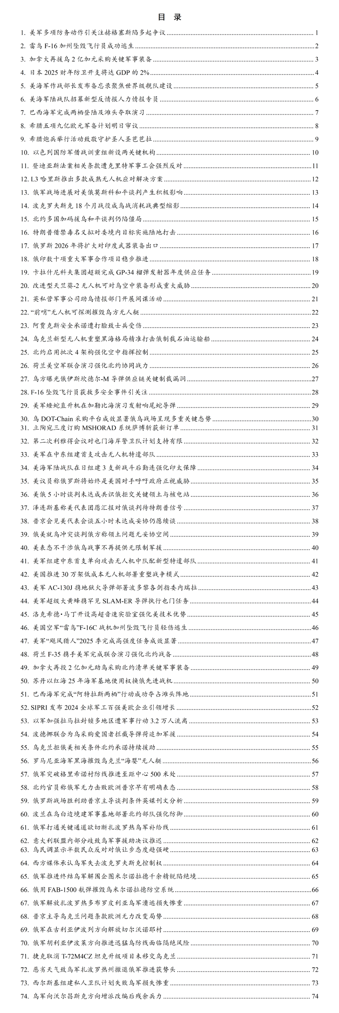 《全球防务动态》系列专刊国内独家每日发布涵盖航天领域、武器装备、军事热点、人工智能、先进制造等领域的全球动态信息。提供“航天动态专报”、“装备动态专报”、“军事动态专报”、“智造动态专报”以及“航天防务新闻日报”等特色产品模块。工作日每日推送,形成结构化、可编辑的文档,供订阅用户在小程序“智研烽火信息”商城下载。每日及时的动态信息能够有力支持各单位进行要讯报送、军情研究与安全形势分析的需求。