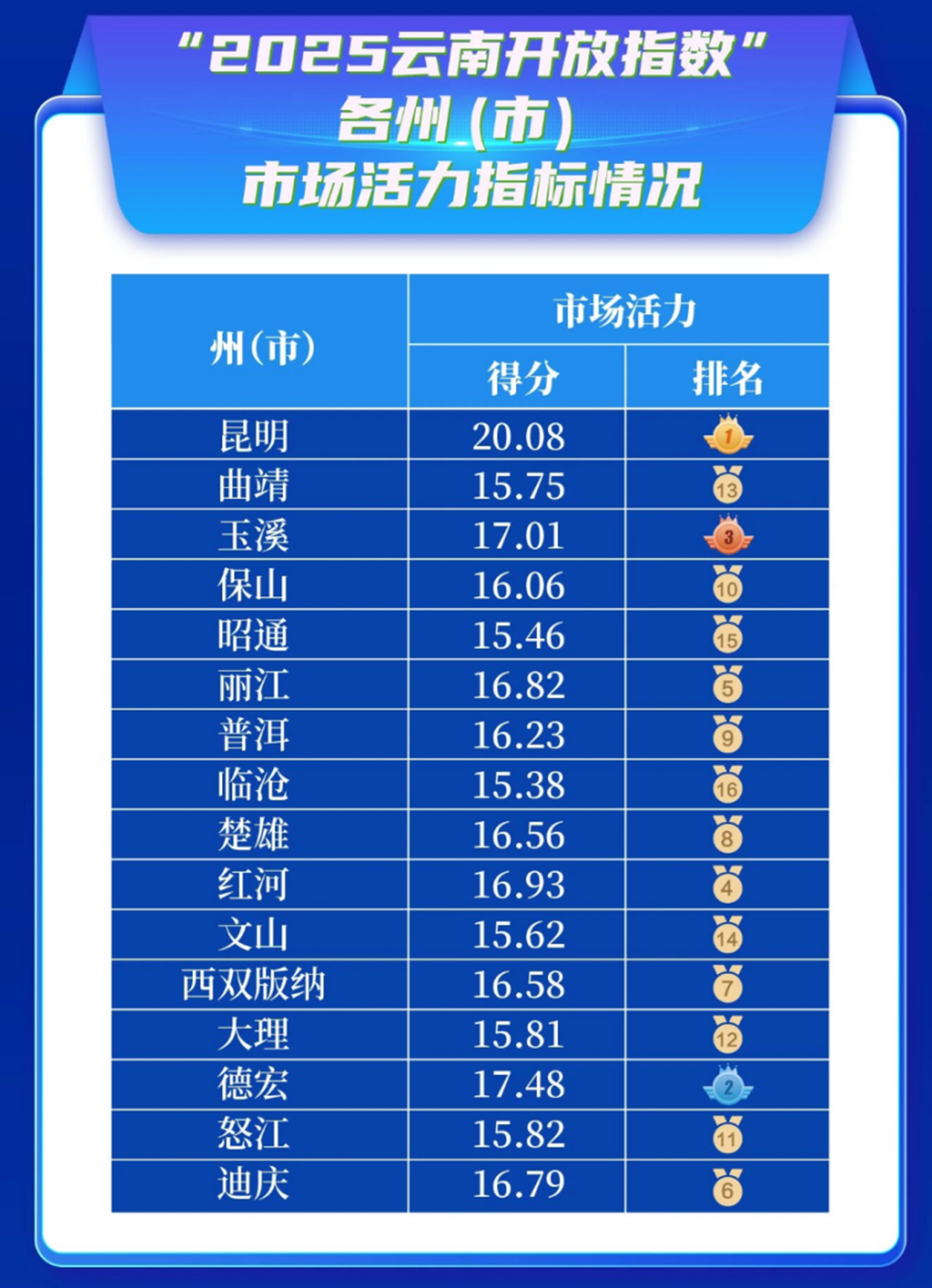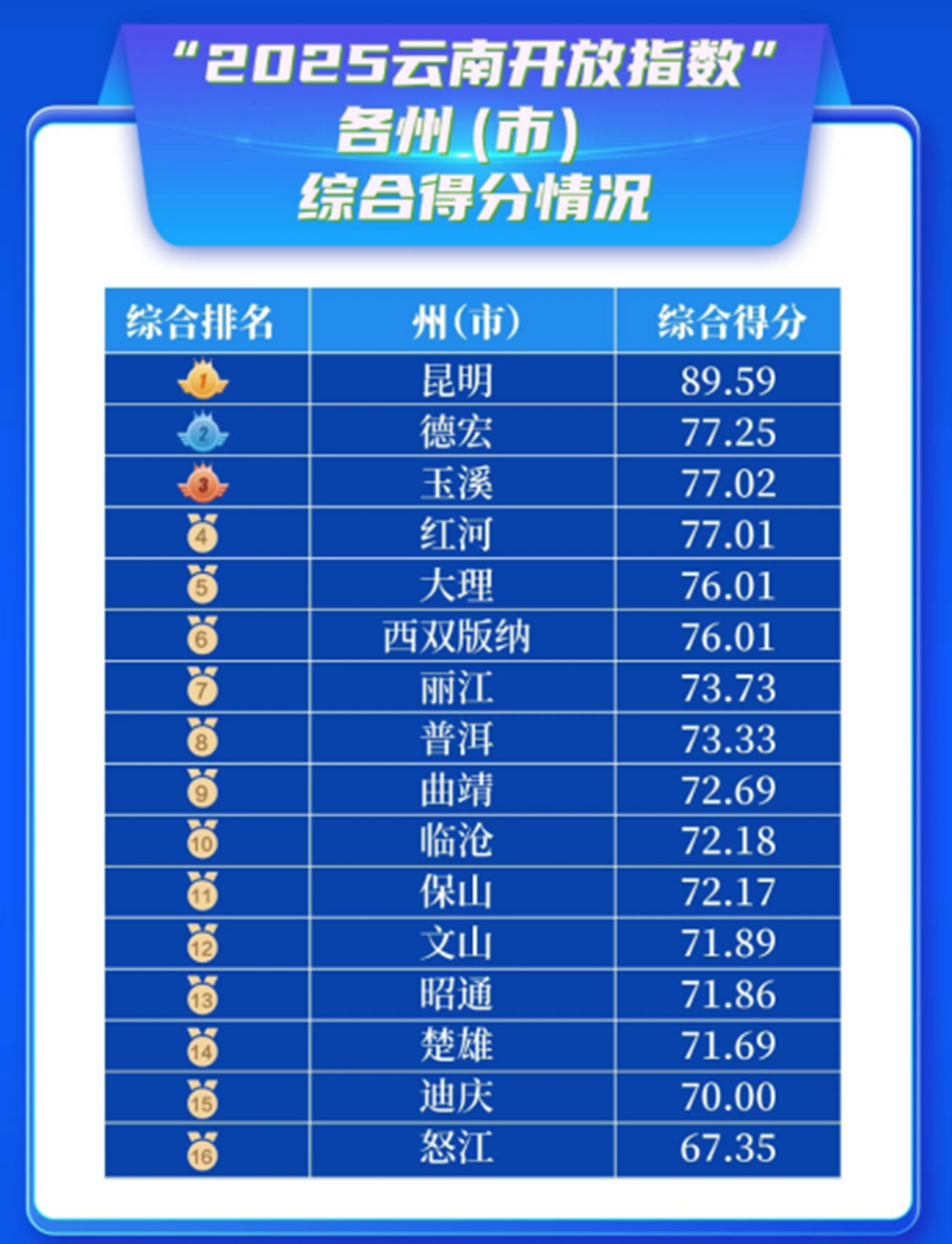 全球化浪潮奔腾不息,2025年的云南正以更开放的姿态阔步前行。全省各州市开放水平实现阶梯式跃升,发展动能持续集聚、开放势能加速释放。各地立足自身禀赋精准发力,在高质量发展赛道上深耕细作,交出了一张张彰显地域特色、饱含发展底气的“开放答卷”。