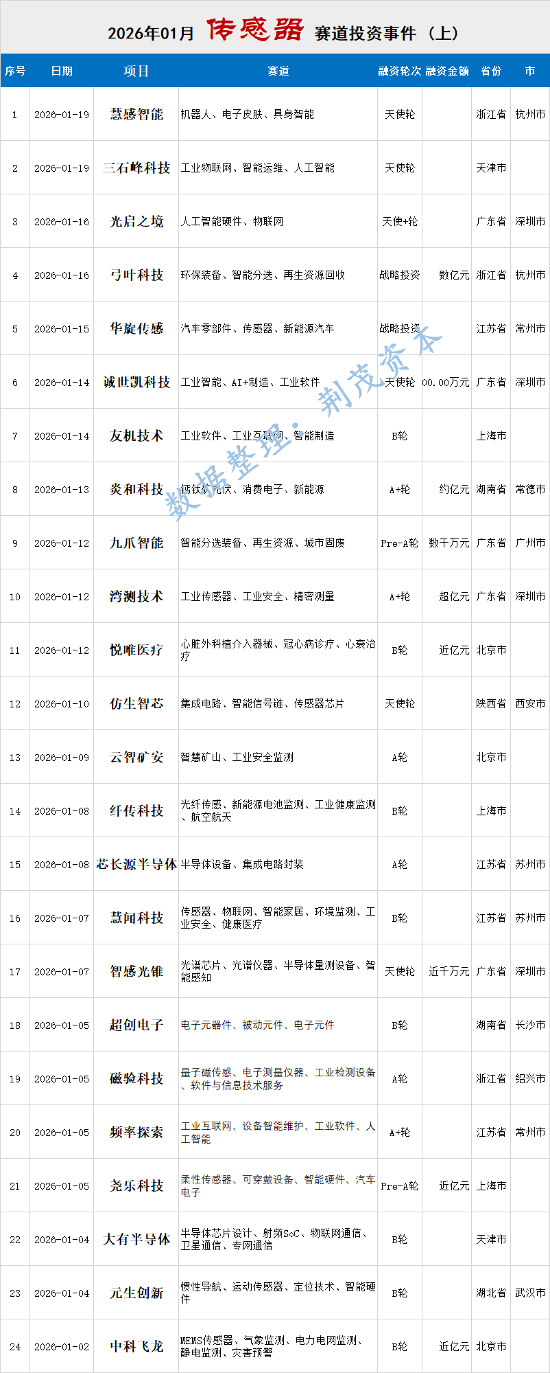 此外,地方国资与产业资本的活跃度显著提升。如苏州高新科创天使基金、合肥冯源仁芯基金、广州白云空天智造基金等均出现在投资方名单中。它们的入局往往与地方产业发展规划紧密结合,旨在培育本地产业集群,其投资更具耐心和战略性,为传感器企业提供了更稳定的成长环境。
