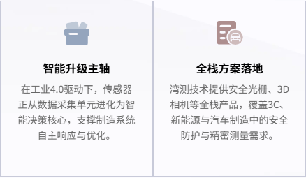 湾测技术在A+轮融资超亿元,其产品线覆盖安全光栅、三维结构光相机、激光位移传感器等,为3C电子、新能源电池、汽车制造提供从安全防护到精密测量的全栈解决方案。