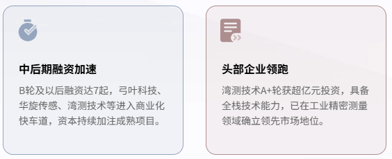 与此同时,B轮及以后的中后期融资事件也达到7起,包括弓叶科技、华旋传感、湾测技术等已进入规模化商业阶段的成熟企业,显示赛道内部分化加速,头部项目正获得持续加注。