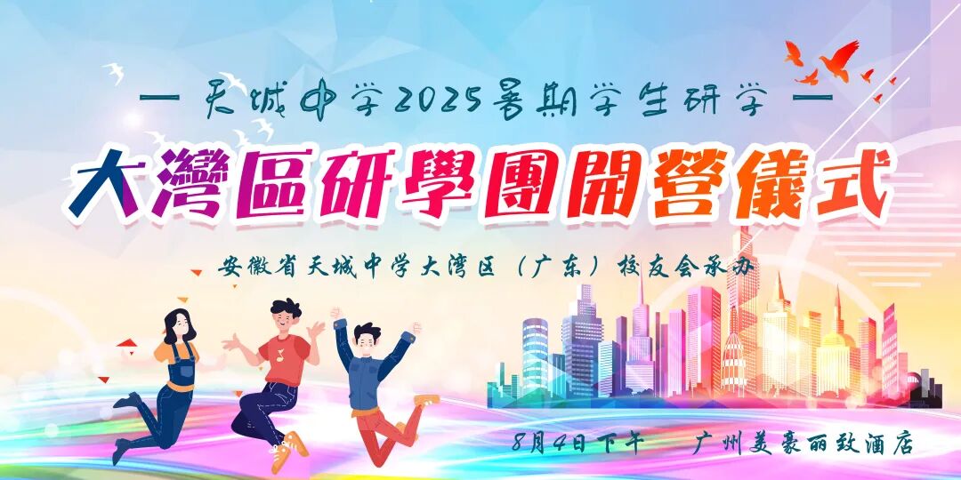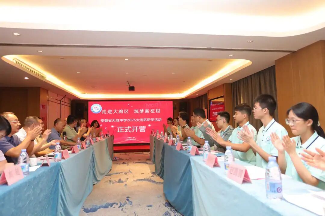 8月4日下午3:30,安徽省天城中学2025“走进大湾区 筑梦新征程”研学团开营仪式,在广州黄埔区美豪丽致酒店成功举办。本次研学团由母校天城中学工会主席、高三年级部主任程永明老师和邓泽跃老师带队,准高三优秀学生代表吴佳乐、方宇、赵子煊、江传生、吴聂琳、伍嘉雯、赵圆圆、金子涵等8位同学组成。参加大会的大湾区校友会代表有:会长张文彬、顾问方树生、执行会长邱江生、秘书长方金杰、常务副会长洪斌、副秘书长江志如和谢春慧、摄影负责人都成郭、总联络人叶国庆、监事余银星和俞雪娇、理事高超和方栋等13位校友。开营仪式由俞雪娇主持。