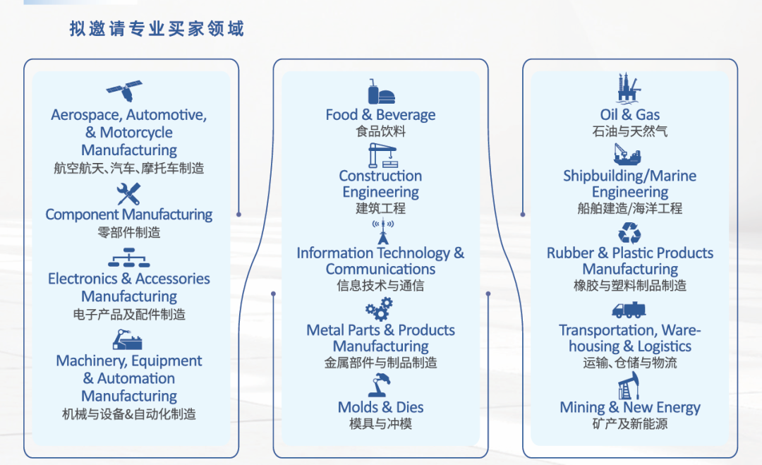展会集中展示工业自动化、人工智能与机器人、数控机床与金属加工、电子制造、工业互联网与集成电路、储能与智慧能源、新能源汽车、摩托车与核心零部件、紧固件设备、低空飞行、新材料、工业节能等智能制造产业链关键领域,覆盖东南亚地区特色鲜明且需求旺盛的行业板块,如汽车制造、电子产业、橡胶塑料、食品加工、矿产及新能源产业等。