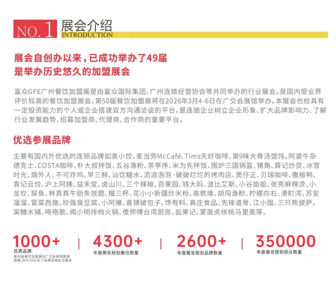 展会名称GFE广州国际餐饮连锁加盟展览会开展时间2026年3月4–6日展出地点广州·广交会展馆扫码咨询展位扫码咨询展位祝您生意兴隆,事业蒸蒸日上,所愿皆成真!转载来源:网络版权信息:文章系转载,仅供分享不做任何商业用途,版权归原作者所有。我们尊重原创,重在分享,如有侵权请在后台联系小编,我们将及时处理,谢谢。点击下方“阅读原文”咨询展位↓↓↓