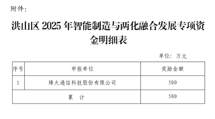 附件:洪山区2025年智能制造与两化融合发展专项资金明细表