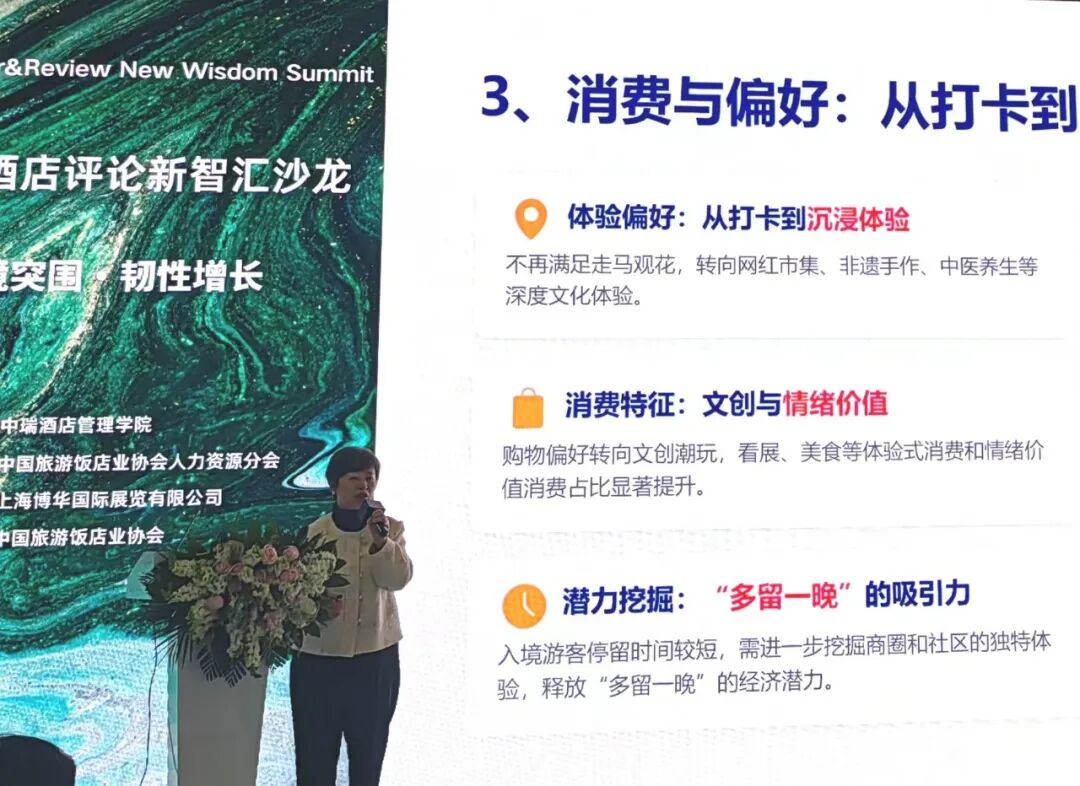 春秋旅游的周卫红93年毕业于上海范大学旅游学院,她们这代人就是为了入境游准备的。周卫红三次和观众互动,一问从业二十年以上的举手,二问不评星、五星、四星的举手,三问上海旅游“双园”是哪“双园”?周卫红认为台下不够active。不给她反馈“说明不是我们这个行业的。”上海入境游旅客主要还是来自韩国、日本。马来西亚来华游客不少,但马来族的不多。穆斯林国家的游客更关注酒店是否是穆斯林友好。日本游客更关注是否有智能卫浴。周卫红留下了“多留一晚”的思考题。