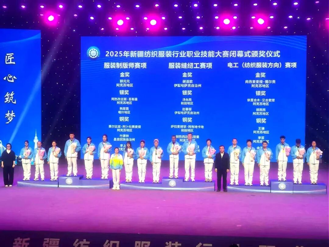 10月20日至21日,2025年新疆纺织服装行业职业技能大赛在阿克苏纺织工业城举行,本届大赛以“匠心筑梦,织造未来”为主题,由自治区棉花产业发展领导小组办公室、人力资源和社会保障厅、工业和信息化厅、总工会、阿克苏地区行政公署、兵团人力资源和社会保障局、兵团工业和信息化局联合主办,阿克苏地区人力资源和社会保障局、工业和信息化局、自治区总工会阿克苏地区办事处、阿克苏纺织工业城(开发区)管委会共同承办,阿克苏技师学院、新疆嘉泰新材料有限公司负责具体实施与赛事保障。