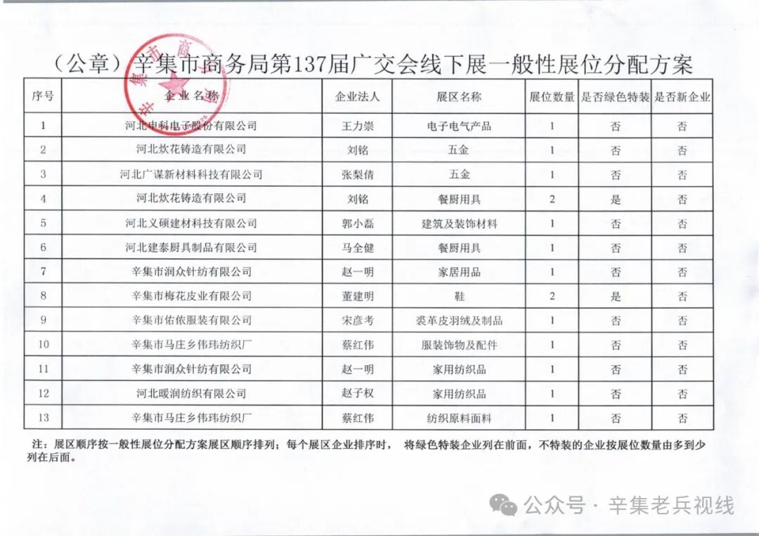 辛集市商务局第137届广交会线下一般性展位分配方案