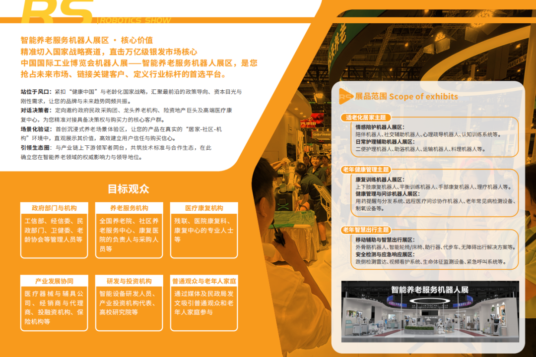 这是智能康养领域首个深度融合“智能制造”与“康养服务”的跨界展示平台。在这里,您不仅展示产品,更将: