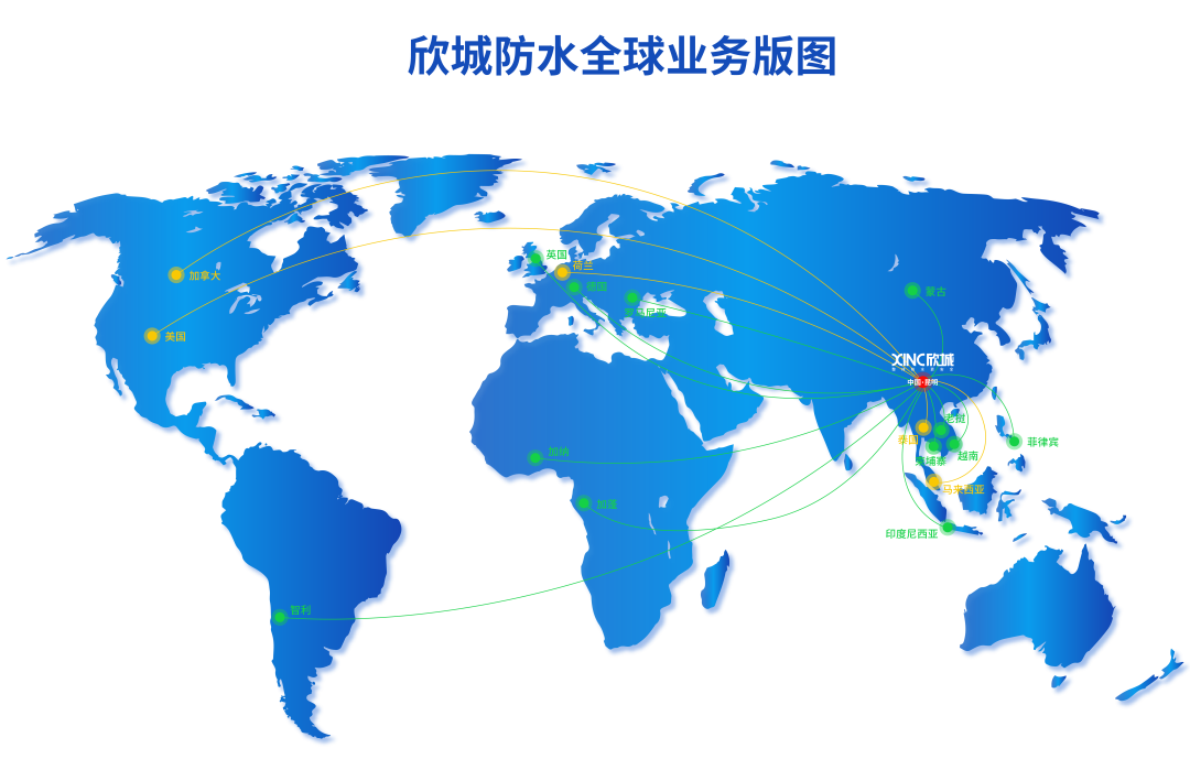此外,据了解,在深耕国内市场的同时,欣城防水积极布局海外,以"中国智造"为底色、"绿色创新"为引擎,依托云南面向南亚东南亚的"辐射中心"定位,创新"产业出海+品牌出滇"双路径,通过"中国技术+云南智造+国际标准"三位一体模式,将环保低碳、高效耐久的防水产品远销南亚、东南亚等35个国家和地区,向世界展示中国绿色科技的发展成果。