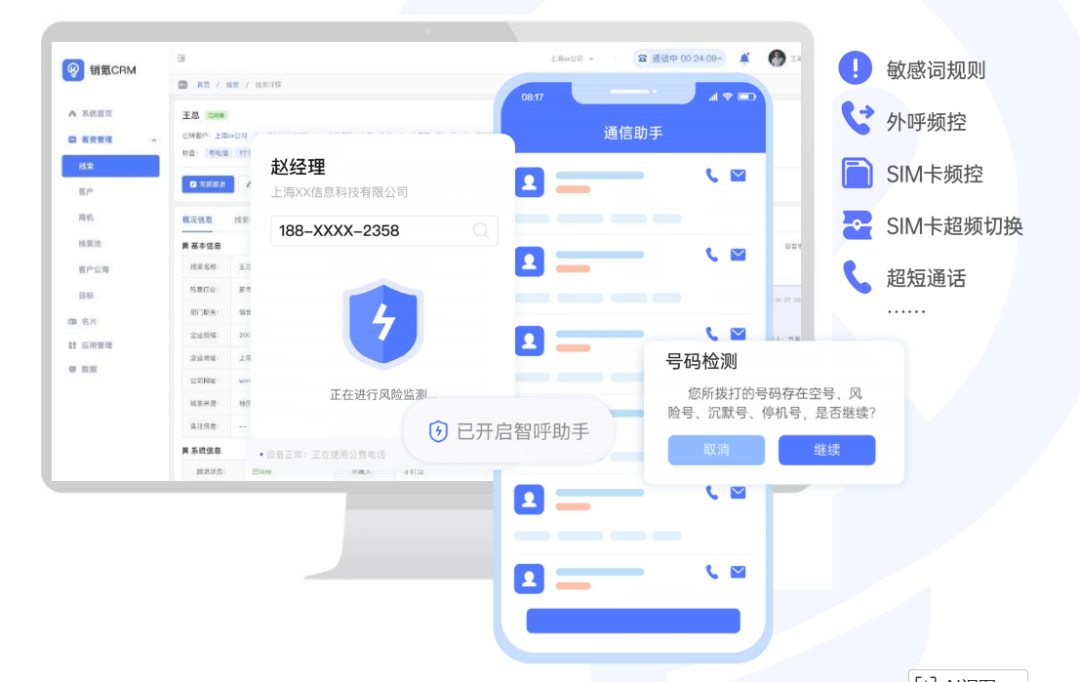 在触客场景中,制造业企业面临多重瓶颈:销售团队日均拨打上百个电话,却要花费大量时间辨别空号、错号,有效接通率低;传统沟通方式依赖个人手机,不仅存在合规风险,更无法实现统一管理和质量监控;跨部门协作时,客户信息分散在各个销售手中,形成信息孤岛,导致客户体验割裂。这些问题直接制约着销售团队的人效提升和业绩增长。