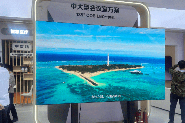 在智慧办公展区,一面135英寸可折叠升降LED一体机成为焦点。这款产品采用LED COB拼接技术,却并不以技术参数为唯一卖点,而是将空间适应性作为核心价值。它通过巧妙的升降与折叠结构,解决了传统大屏在空间利用上的痛点,完美实现了单一产品在多项应用间的灵活转换。