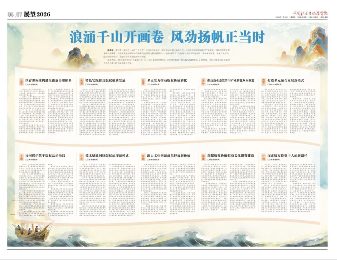 新年伊始,《版权监管周刊》特邀部分省(区、市)版权管理部门,分享地方版权工作实践与前瞻思考,汇聚智慧,共同为推动2026年版权工作迈上新台阶贡献思路与力量。