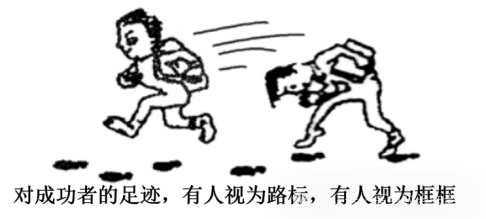 【解析】①②:漫画强调不能把成功者的足迹简单视为框框去盲目遵循,不能一味地遵循成功经验,而要根据自身实际情况灵活对待,保持开放包容,坚持为我所用,①排除,②正确。