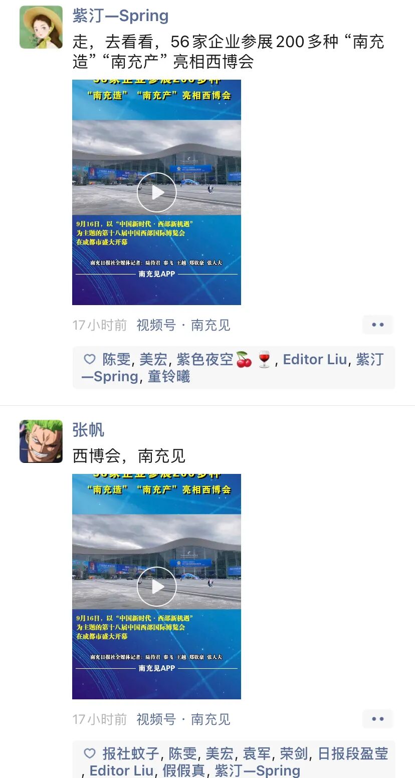 此外,南充见APP还生产了《全球南商总会第一届理事会第三次会议举行》《“郑”在现场:第十八届中国西部国际博览会》等10余条视频产品,通过抖音、快手、腾讯视频号等平台推送,让网友身临其境、大呼过瘾。