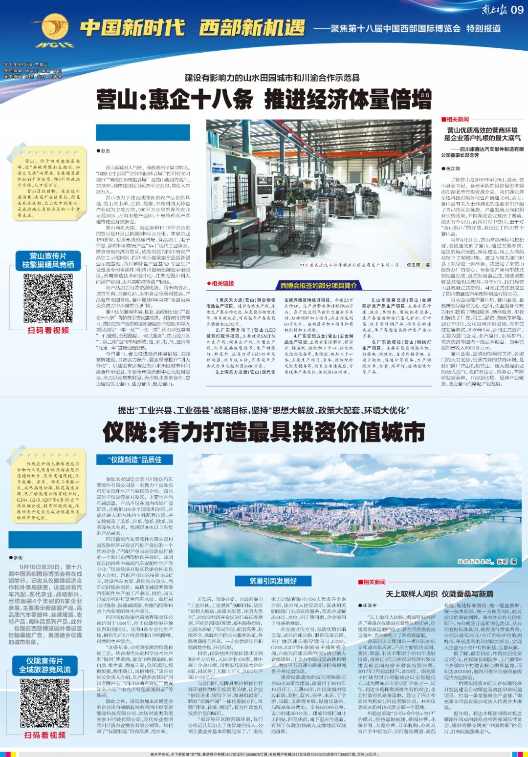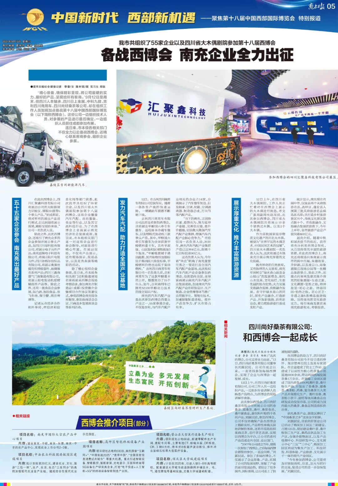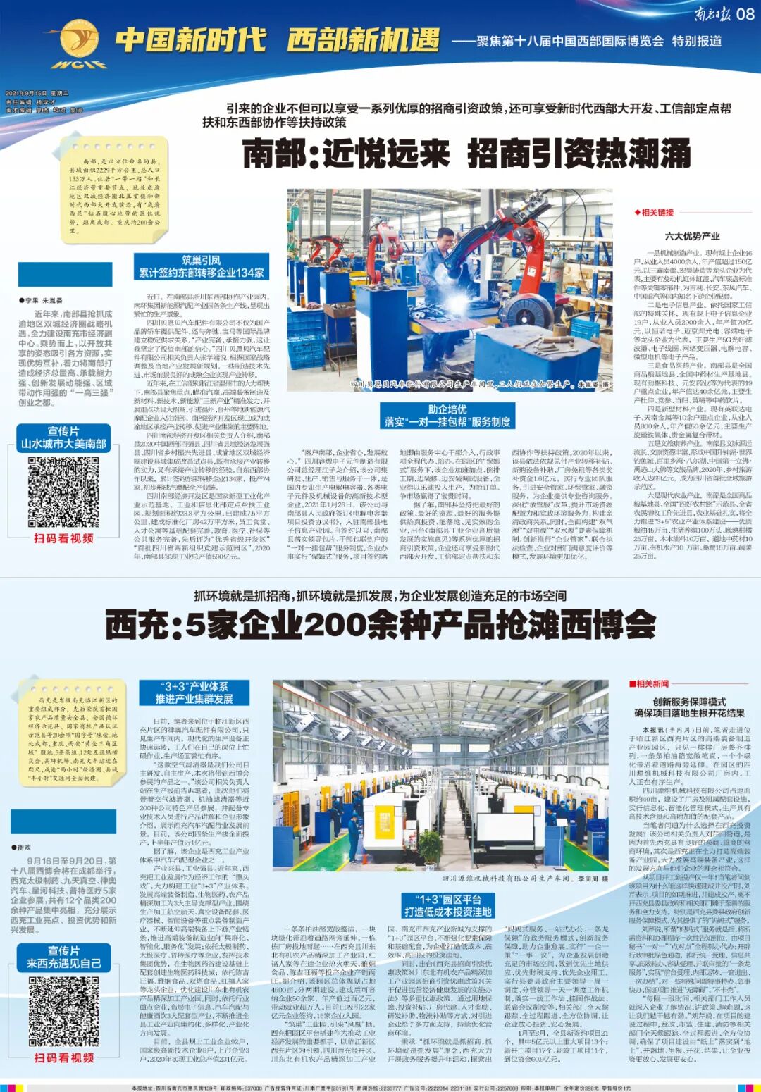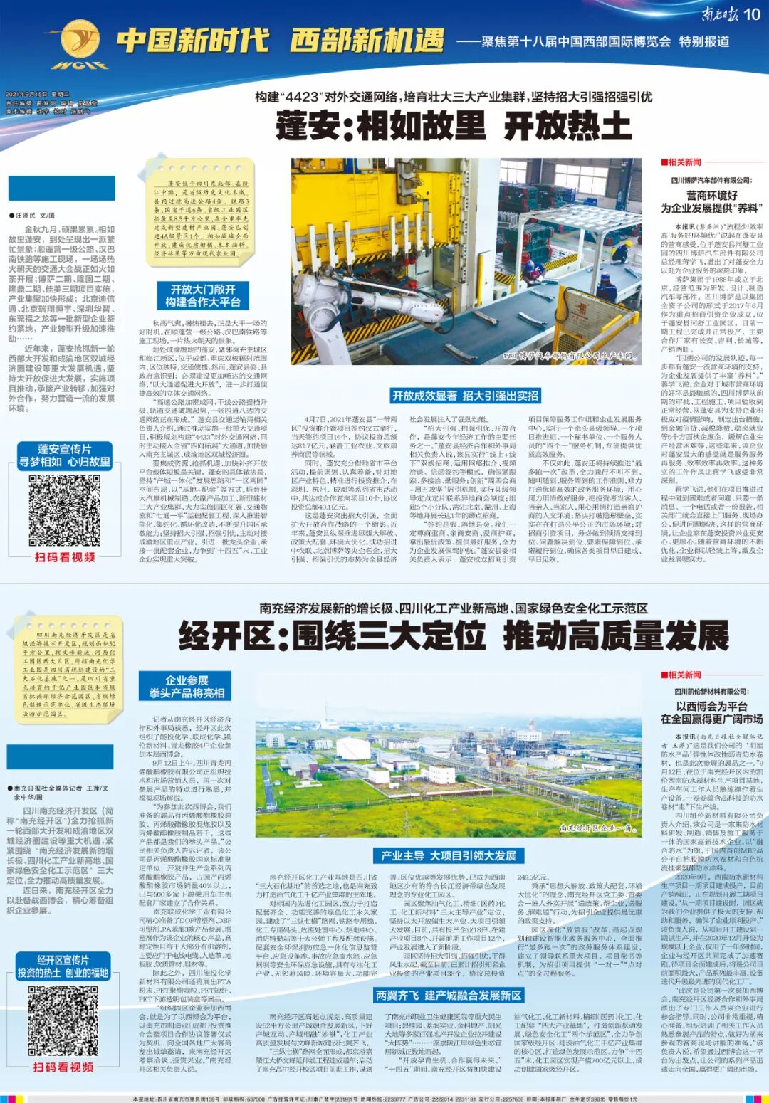 9月15日,《南充日报》用6个整版刊载西博会特别报道。其中,《备战西博会南充企业全力出征》详细介绍了南充备战西博会整体情况,并分别以《顺庆:产业聚集打造“智造”高地》《高坪:招商引资释放“磁场效应”》《嘉陵:三大产业蓬勃发展》等为题,为九县(市、区)和经开区“量身定制”半个版。当天的《南充日报》“长途跋涉”200多公里,被送往2021南充市制造业(成都)投资推介会暨项目合作协议签署仪式现场,得到与会嘉宾高度赞扬。