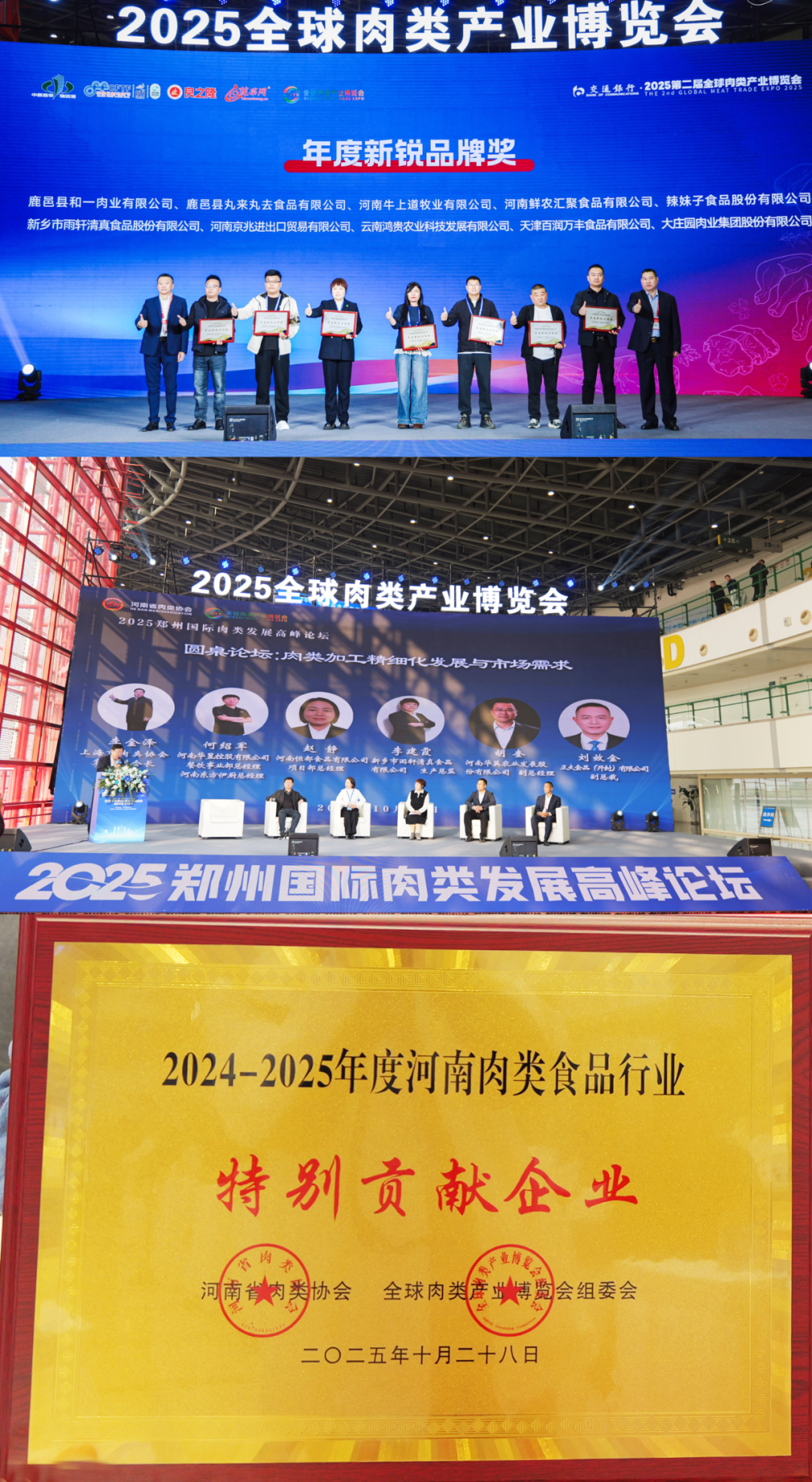 在本届展会上,雨轩食品收获了年度新锐品牌奖、2024-2025年度河南省肉类食品行业特别贡献企业奖等殊荣。
