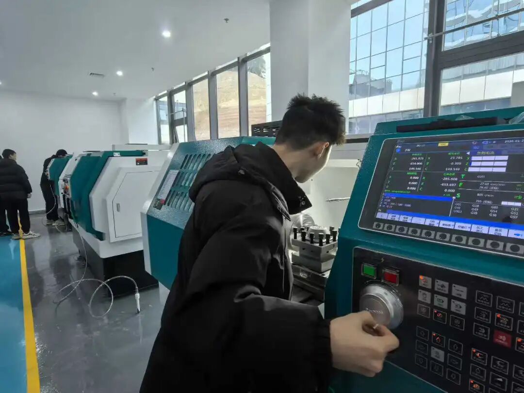 基地的课程设置完全打破传统界限,不看“书本”看“订单”。课程体系以台州企业的实操需求为指向标,与生源学校共建“数控专业”。更硬核的是,学员培训期间就能考取车工、铣工认证,同时能进行Fanuc(发那科)系统认证。这种“入学即入职、学习即上岗”的无缝衔接模式,让学员一毕业就能达到台州规上企业的用人标准,真正实现了“跨省就业,一证通行”。