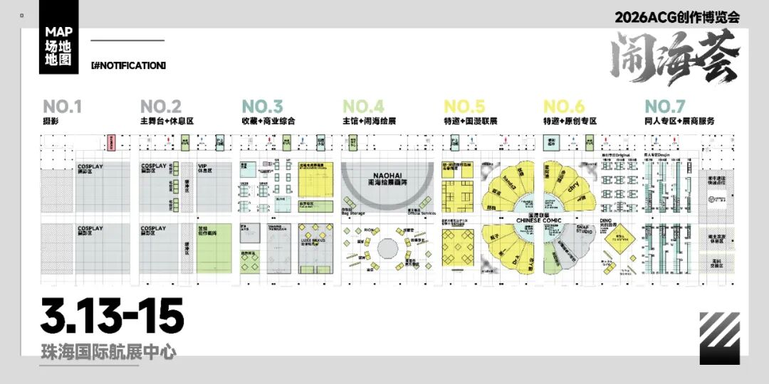 本届闹海荟2026ACG创博会以“创意汇聚,闹海珠海”为主题,展览及活动面积逾7万平方米,规划七大主题展馆,涵盖COS摄影、企业展示、游戏创作、官方主题展示、原创漫画与特邀嘉宾等多个专区。100余位行业嘉宾及知名人士将在现场进行创作分享,共同呈现一场涵盖全产业链的创意盛宴,预计将吸引6万人次参与。