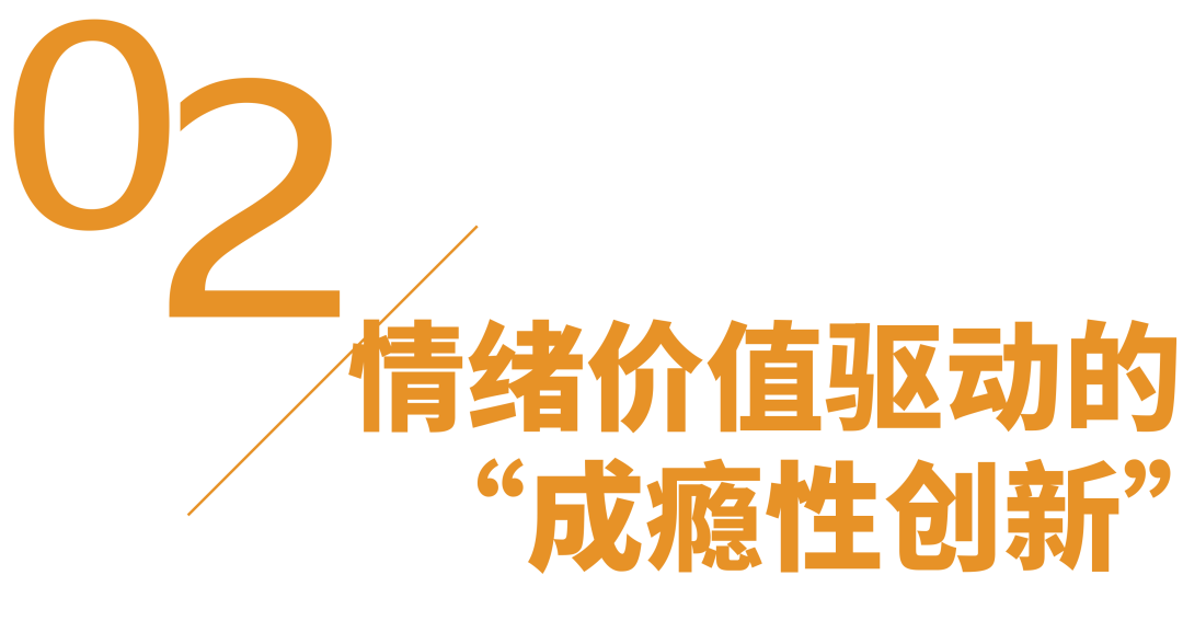 也就是同样的价格,情绪价值高了,就容易做购买决策。情绪价值能够让消费者与品牌产生深层次的情感连接,从而提升品牌忠诚度,甚至激发反复购买行为,这就是“成瘾性创新”。