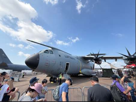 2月7日8日是公众开放日,在停留新加坡期间,幸逢盛会,我们在一周前就已经预约购票,7日早8点,到结合地点乘坐大巴前往新加坡国际会展中心进行安检,工作人员服务态度好,安检动作标准,过检后马上乘坐接驳大巴,接驳车辆连绵不断,又经过40分钟的车程,到达樟宜会展中心室内展厅和室外静态展示区。室内有空客、波音、中国商飞等大厂展台:C919、A350、B787模型 / 客舱展示;室外静态展示区37架真机一字排开,军机、民航、公务机、无人机全都有,是现场最震撼的区域。