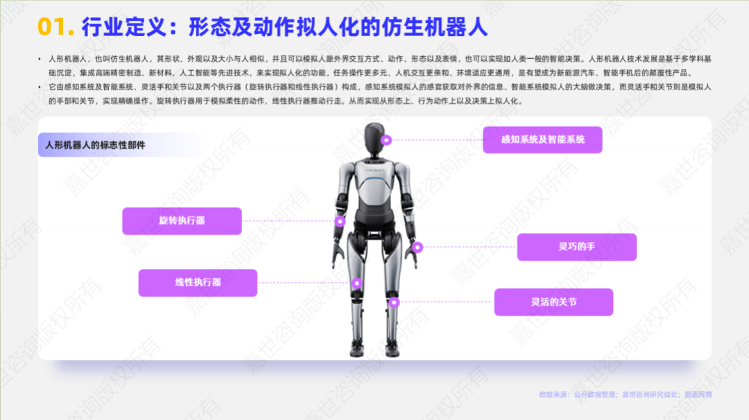 2025 年,人形机器人行业迈入 “技术验证” 向 “规模化商用” 的关键转折期,成为全球科技竞争核心赛道。从工业装配到家庭服务、医疗康养,多元场景加速落地,行业兼具新能源汽车式增长潜力与交付、适配等现实挑战。在此背景下,嘉世咨询的《2025年人形机器人行业解析报告》从不同维度深度解析,为行业参与者提供参考。