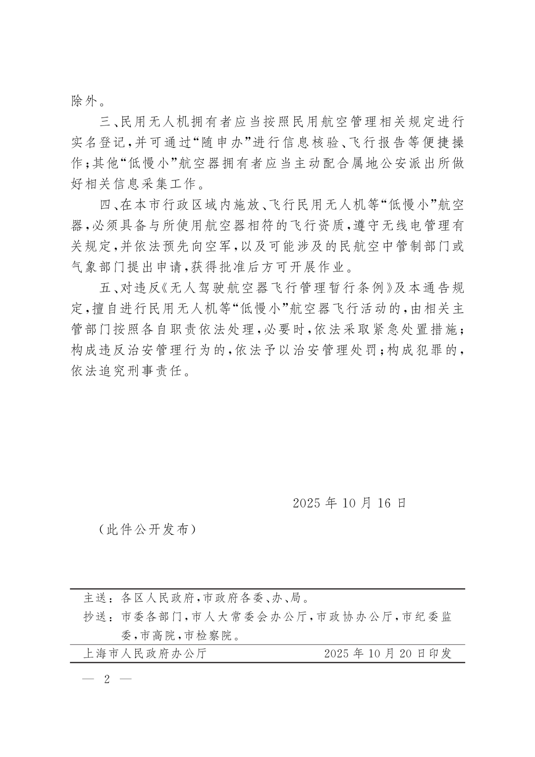 二、2025年10月27日0时至11月10日24时期间,在本市禁止民用无人机等“低慢小”航空器施放、飞行,但经依法批准用于物流运输、应急救援、低空文旅、智慧城市、载人交通等活动的除外。