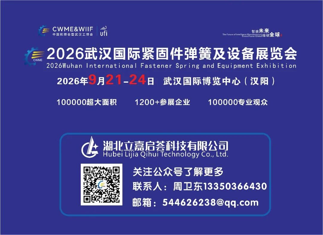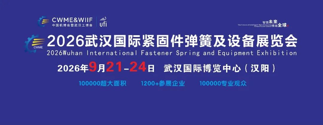 第26届中国国际机电产品博览会暨武汉国际紧固件/弹簧及设备展览会,将于2026年9月21-24日在武汉国际博览中心(汉阳)举办。