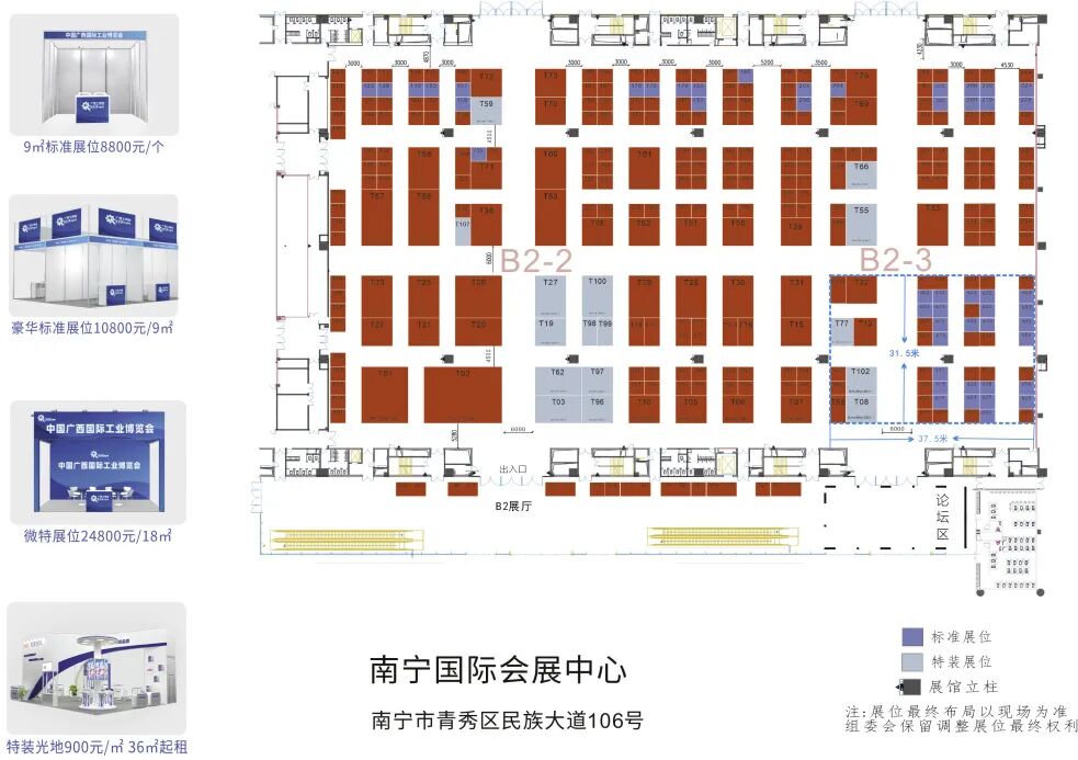 本次大会设置展位300余个,目前已确定标准展位194个,特装展位47个。红色区域为已售展位,蓝色区域为可选展位,展位所剩不多,有意向的企业请及时与协会秘书处联系。