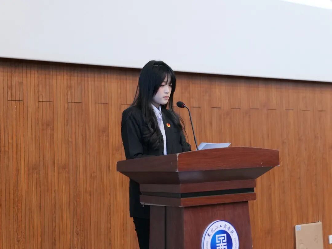 团总支副书记李思雨代表老团员发言,她结合自身在专业学习、学科竞赛、志愿服务中的实践经历,向新团员们传递了 “以青春赴使命,以奋斗践初心” 的信念。她谈到,作为智能制造与交通工程领域的青年学子,团员身份不仅是荣誉,更是扎根专业、勇攀技术高峰的动力,希望新团员们珍惜团组织平台,主动将理论学习与工程实践相结合,以实际行动诠释团员的责任与担当,共同为学院发展和国家智能制造产业升级贡献青春力量。