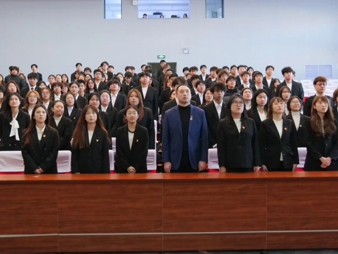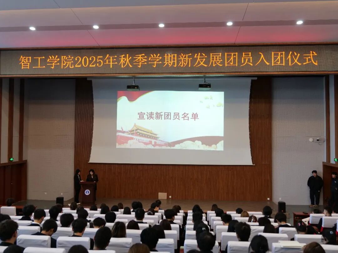 12月9日,智能制造与交通工程学院2025年秋季学期新团员入团仪式在哈南教学区图书馆报告厅隆重举行。院长助理、团总支书记王公男,团学骨干代表及新发展团员共同参加此次活动,仪式由学院团学骨干王维茹主持。