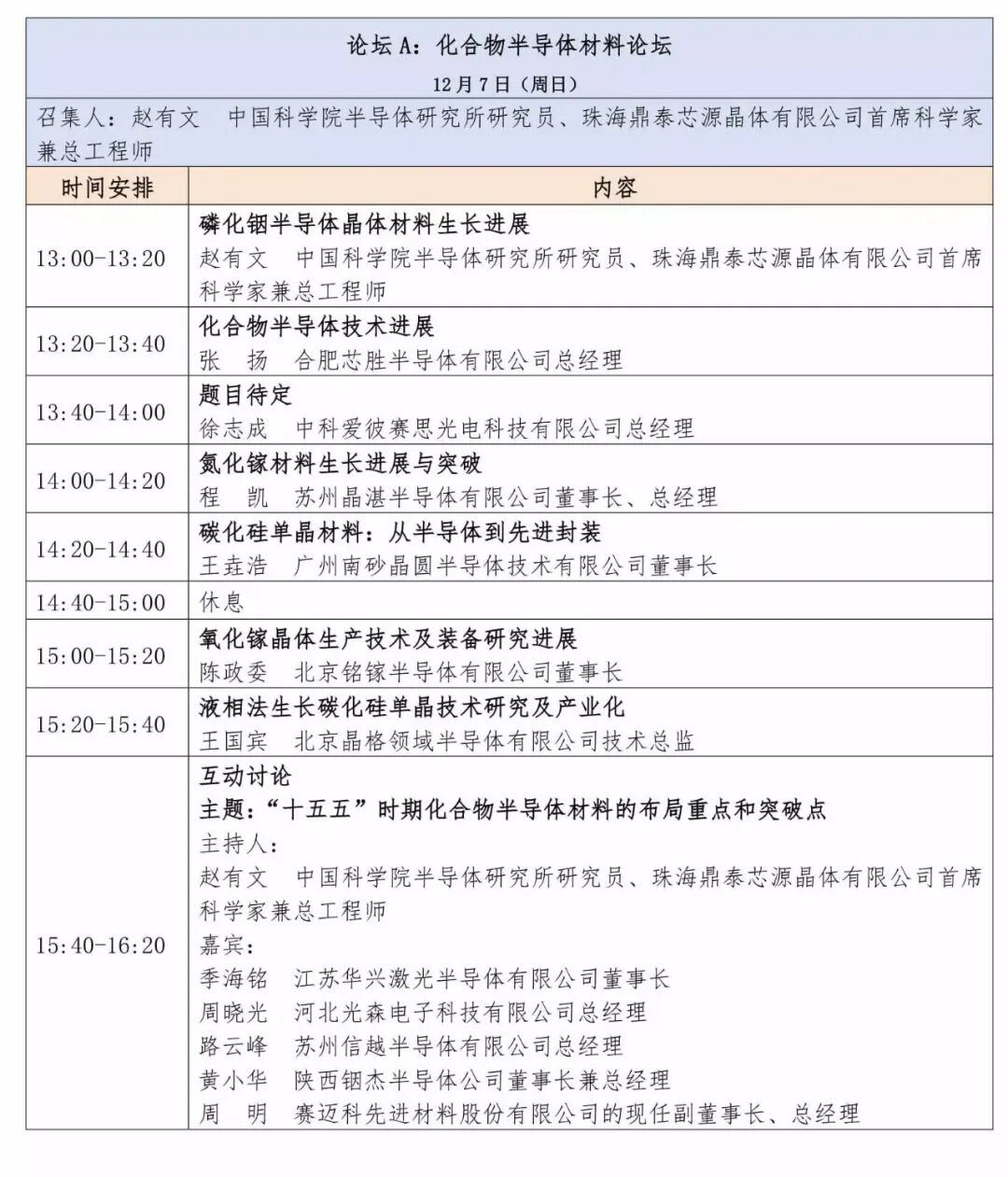 论坛A:化合物半导体材料论坛