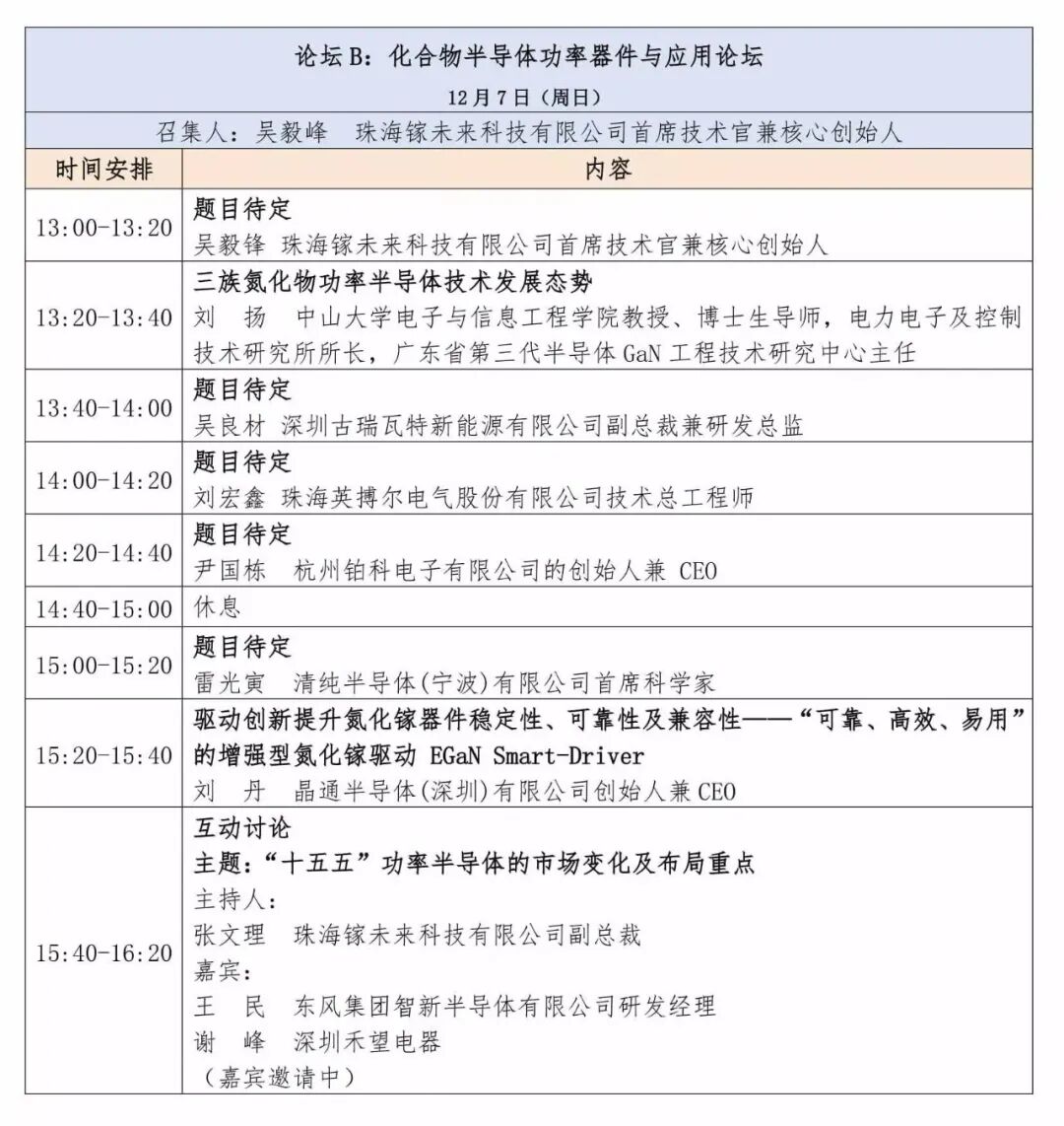 论坛B:化合物半导体功率器件与应用论坛