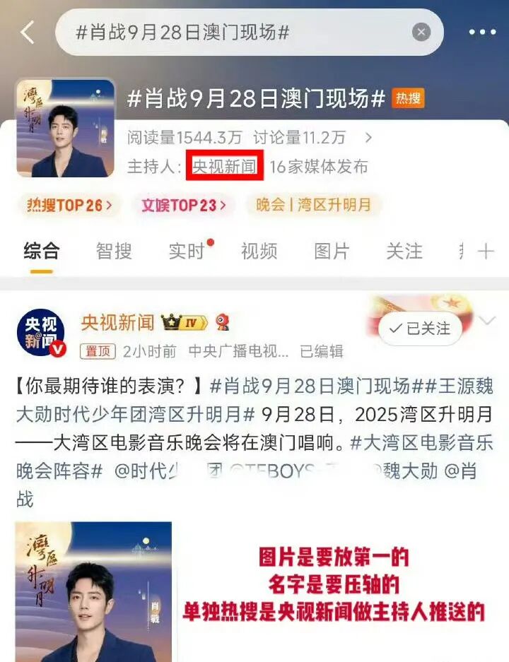 9月28日在澳门开唱的“湾区升明月”晚会,肖战已经官宣加盟。看过去年盛况的人早开始期待: