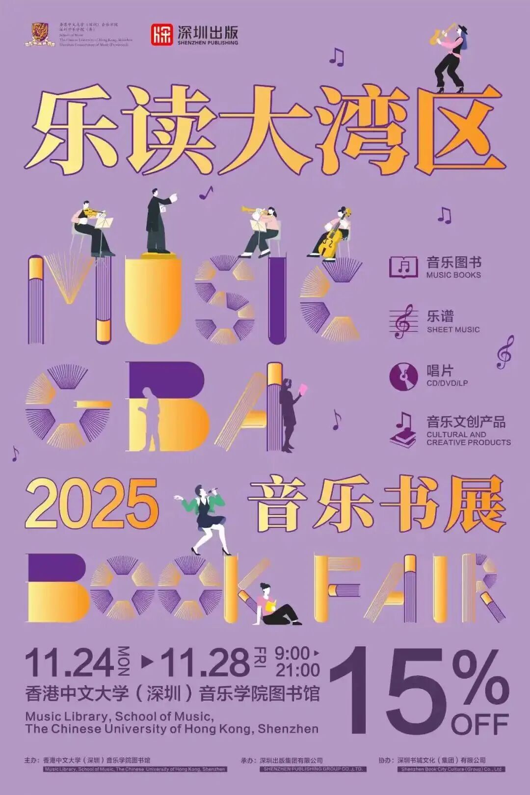 11月24日至11月28日,每日9:00-21:00,香港中文大学(深圳)音乐学院图书馆将于馆内举办2025年“乐读大湾区”音乐书展的活动。