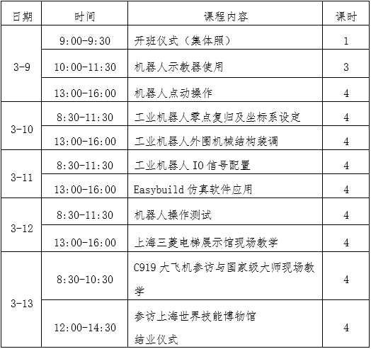 通过系统的培训,掌握工业机器人的基本操作,通过参访开拓系统视野,为培养适应智能制造产业需求的高素质技术技能人才奠定基础。