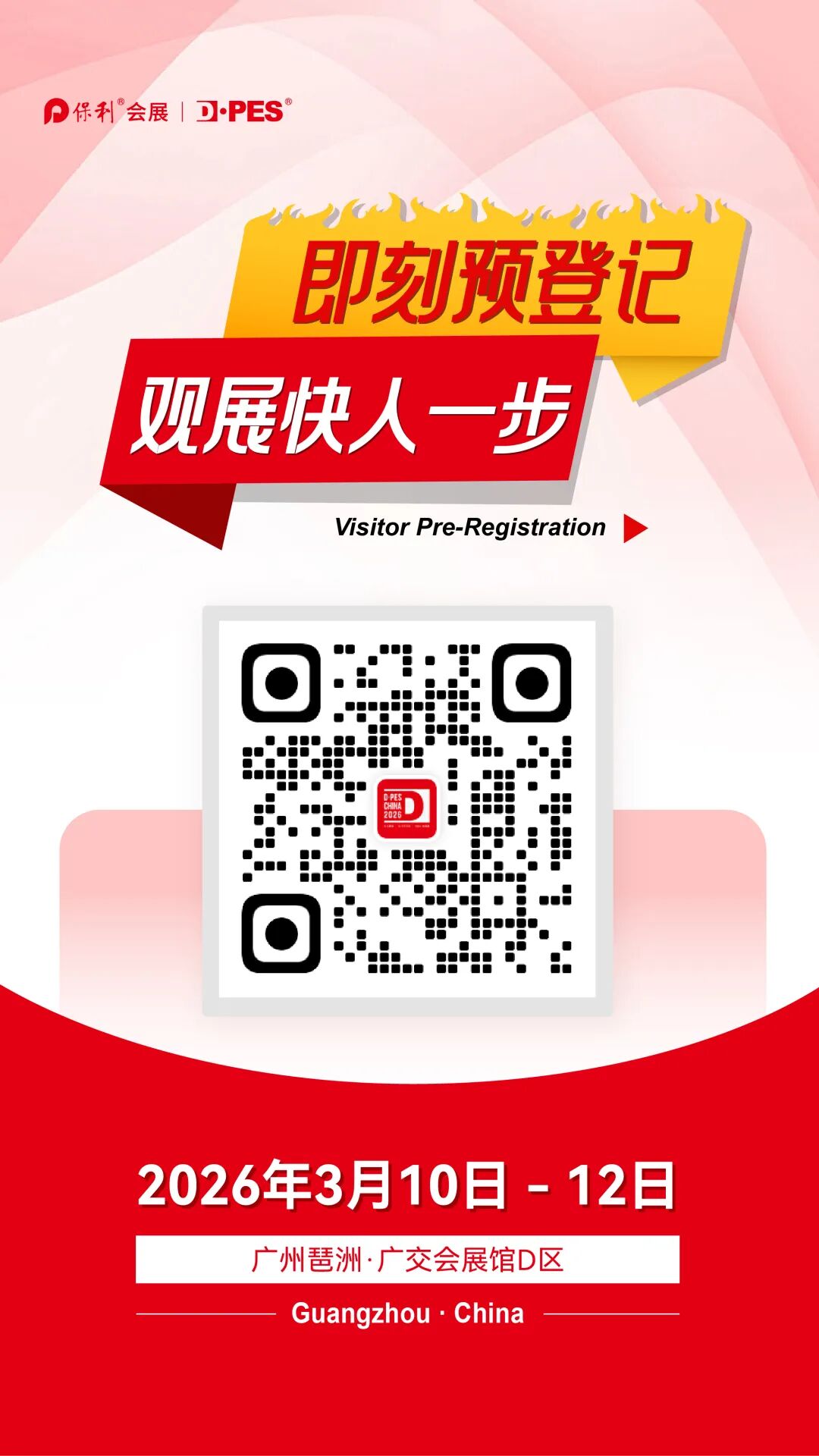 别愁!2026年3月10-12日,DPES CHINA 2026将在广州・琶洲广交会展馆 D 区隆重启幕!预登记通道已火爆开启!